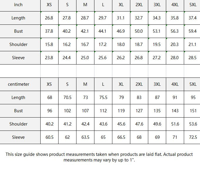 inch XS S M L XL 2XL 3XL 4XL 5XL